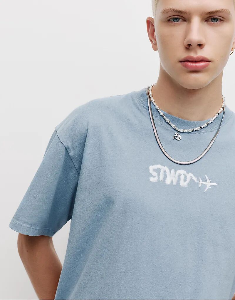 Футболка Pull&Bear Stwd с облаками и самолетом синего цвета