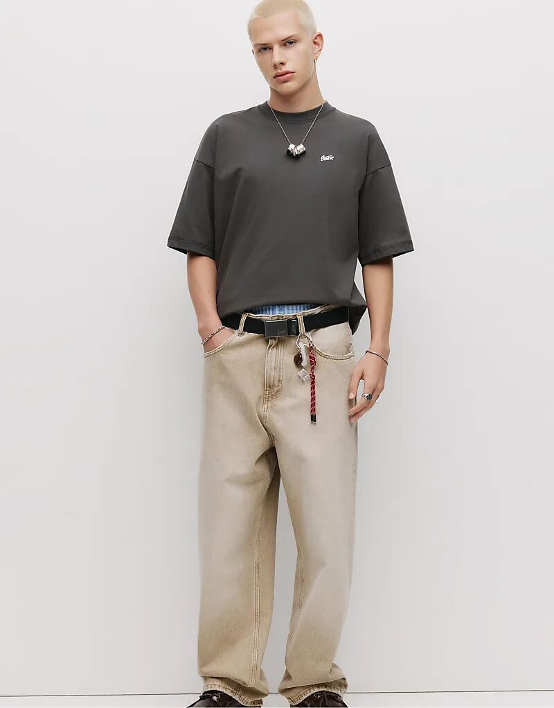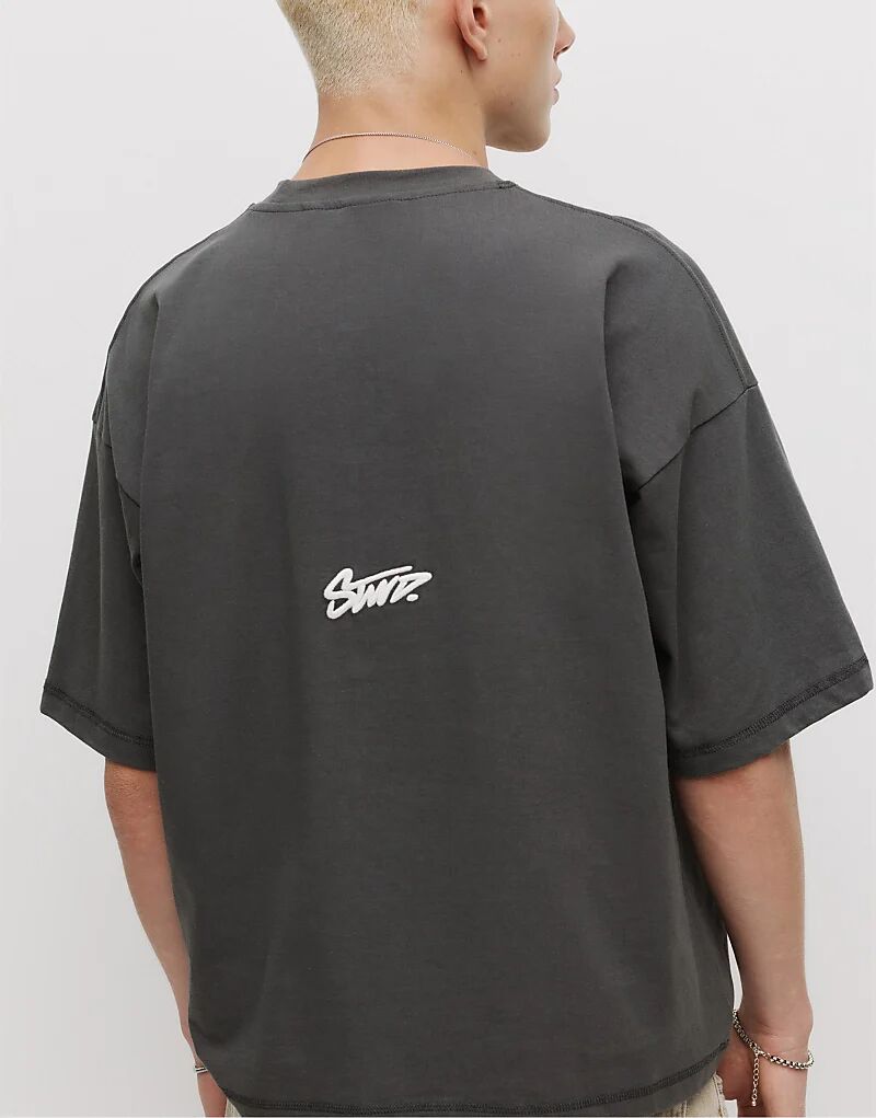Футболка свободного кроя Pull&Bear Stwd серого цвета