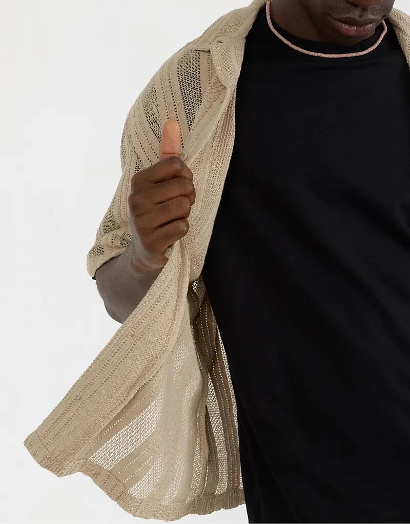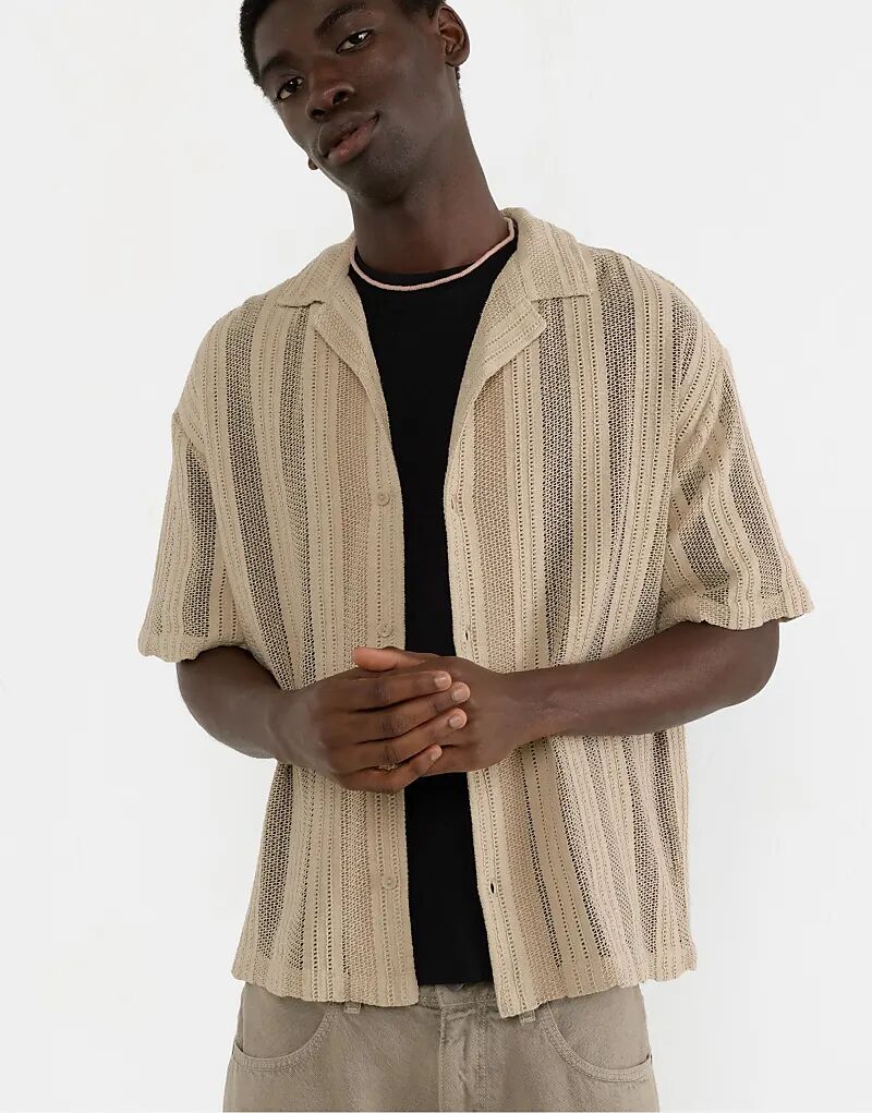 Рубашка с короткими рукавами Pull&Bear Cutwork песочного цвета