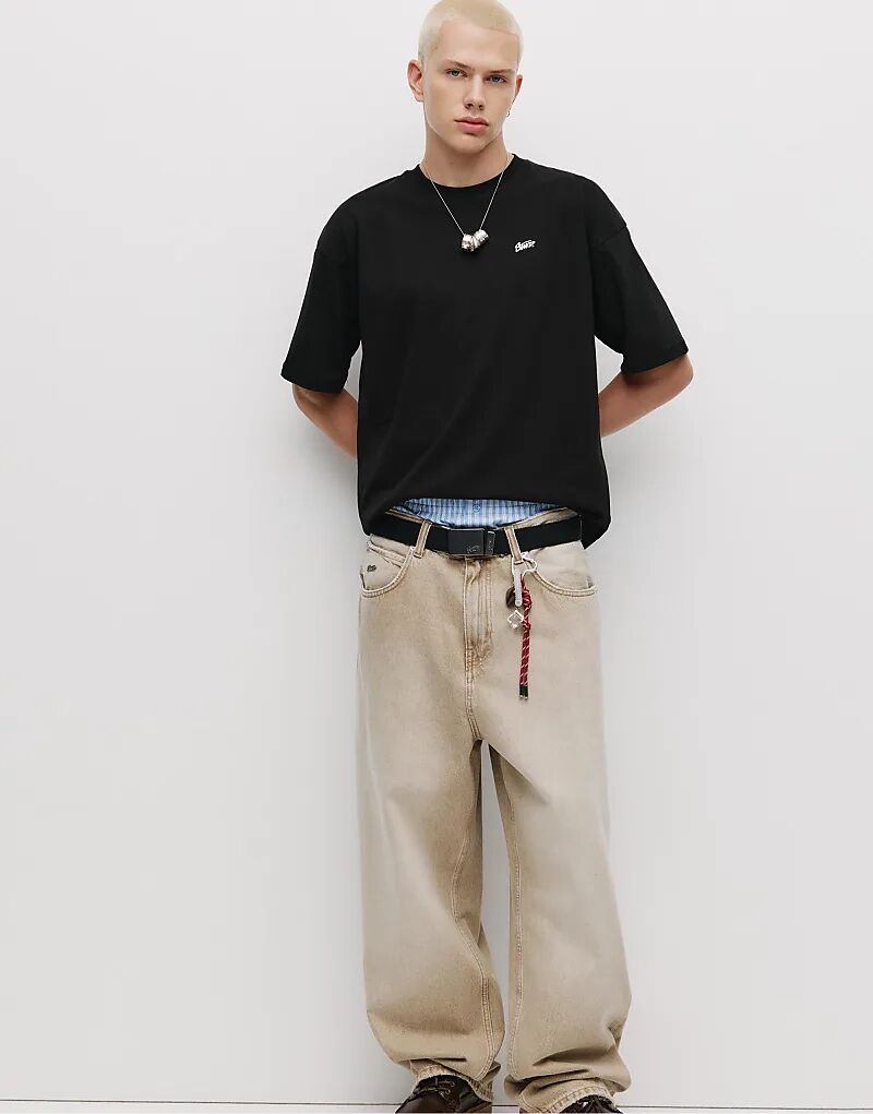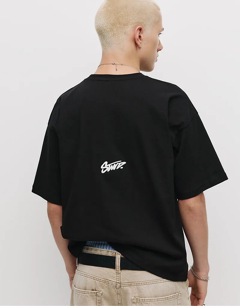 Футболка свободного кроя Pull&Bear Stwd черного цвета