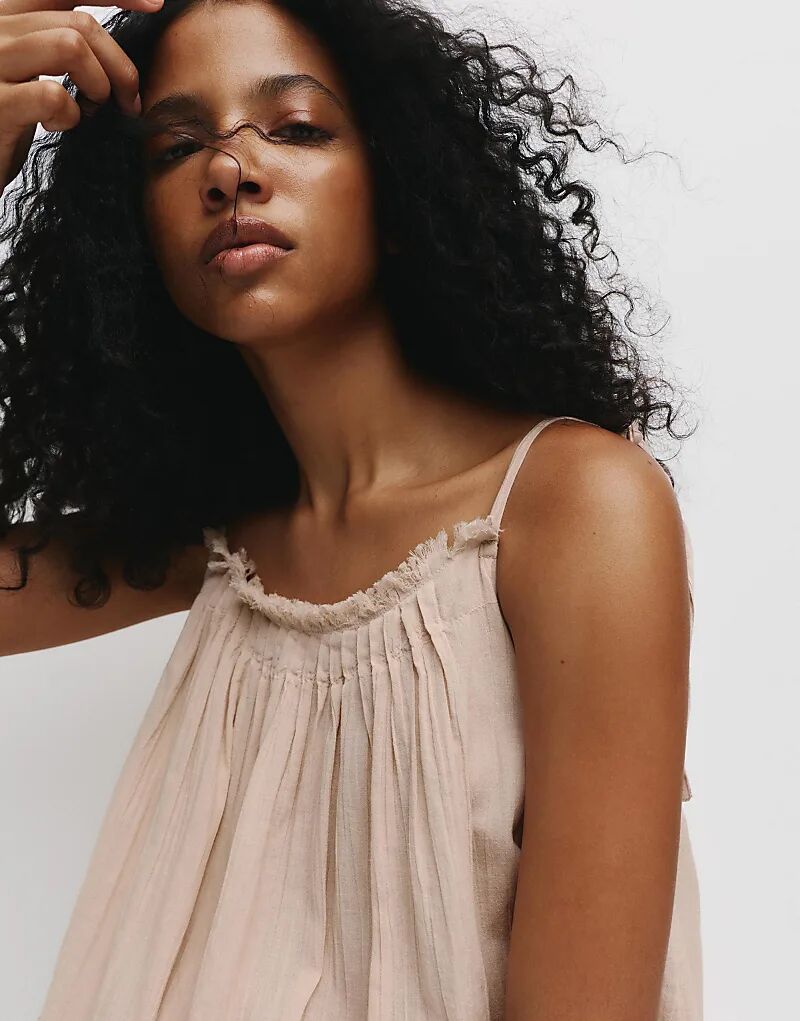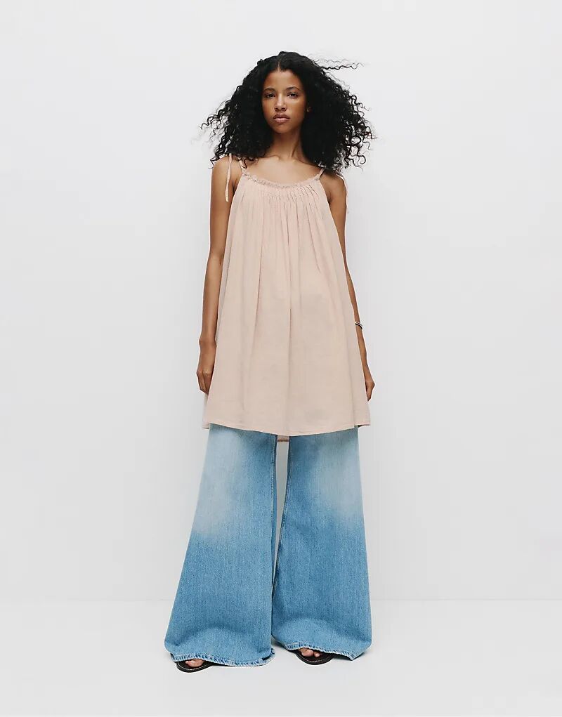 Короткое платье в деревенском стиле Pull&Bear нежно-розового цвета