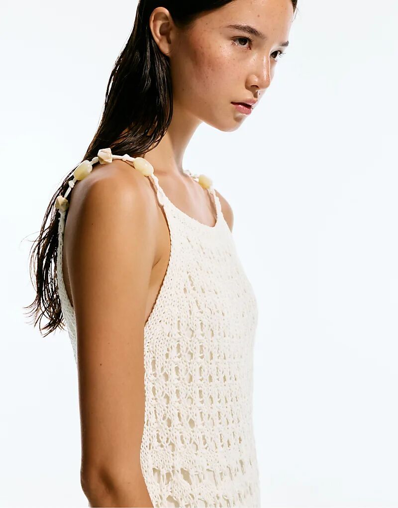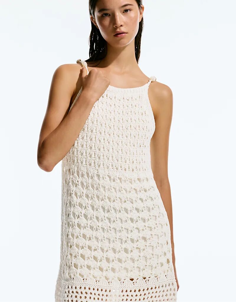 Короткое платье-вязание крючком с бисером Pull&Bear бежевого цвета 3 833₽