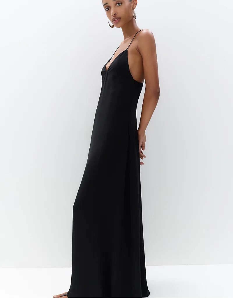 Платье миди с открытой спиной Pull&Bear черного цвета 4 446₽