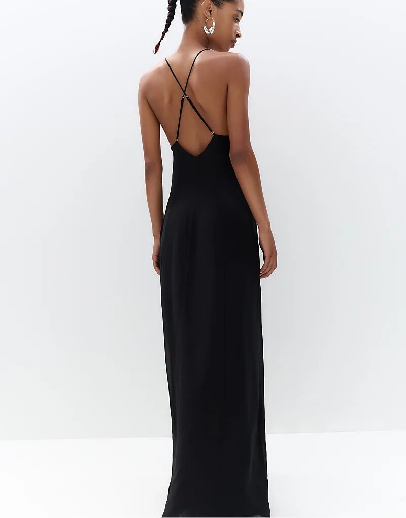 Платье миди с открытой спиной Pull&Bear черного цвета