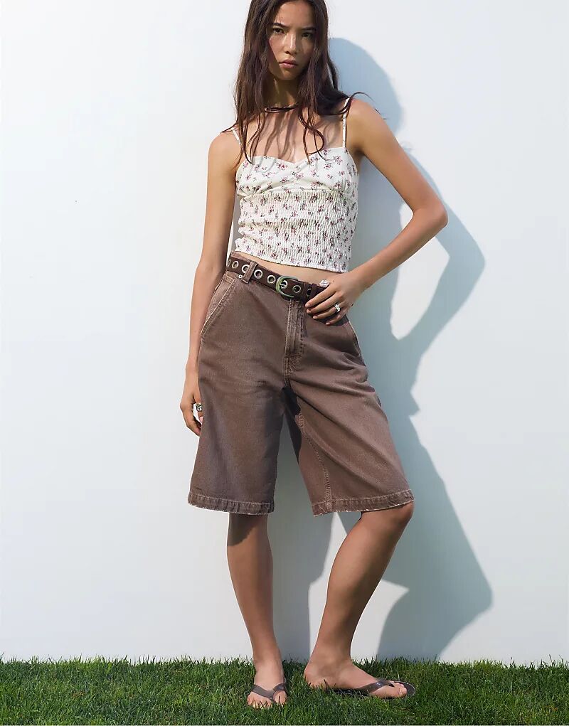 Топ Pull&Bear с цветочным принтом и бретельками в оттенке белого