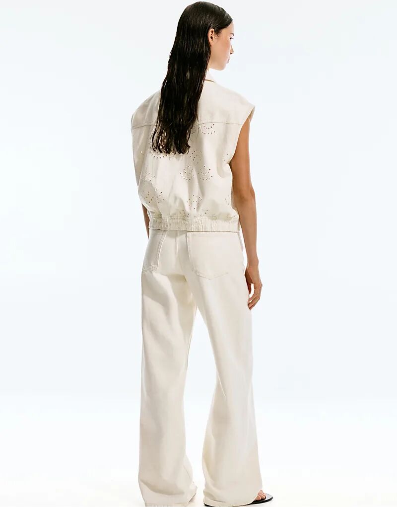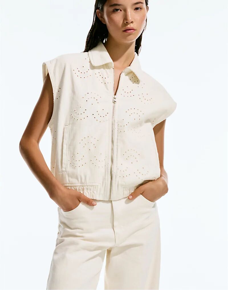Жилет из хлопка с вышивкой Pull&Bear бежевого цвета