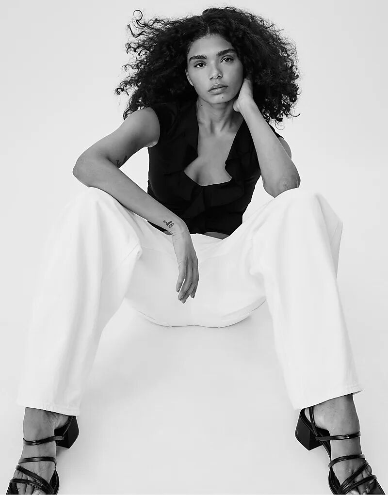 Топ Stradivarius из полиамида с оборками черного цвета 2 533₽