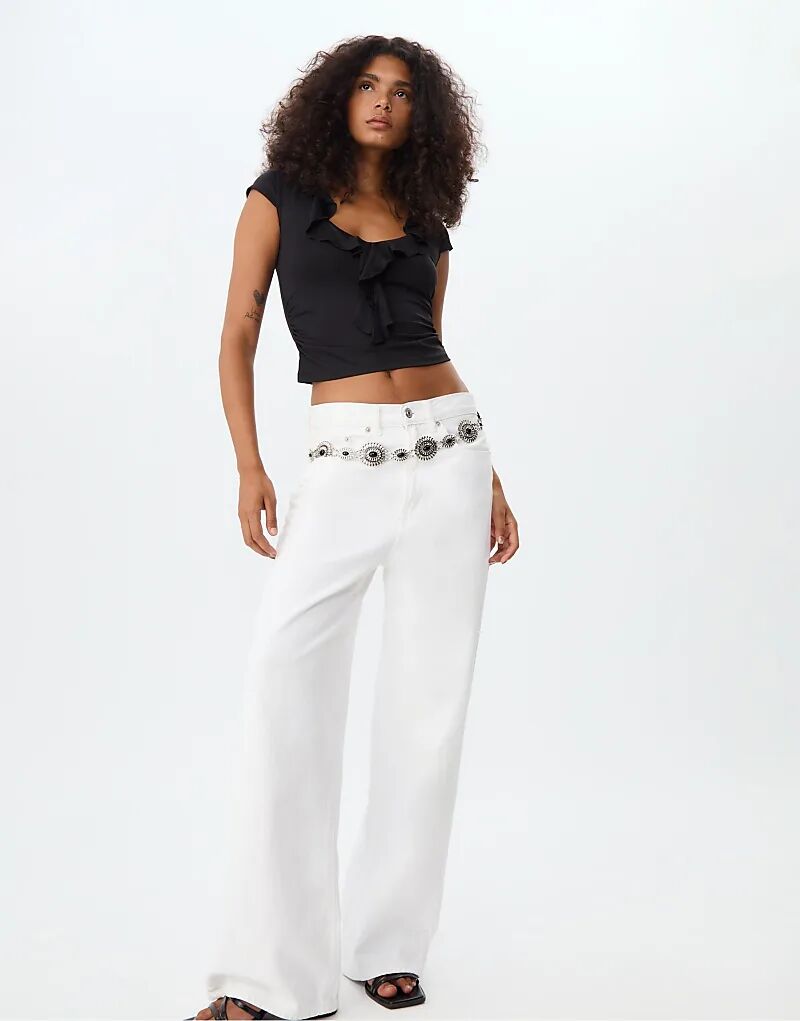 Топ Stradivarius из полиамида с оборками черного цвета