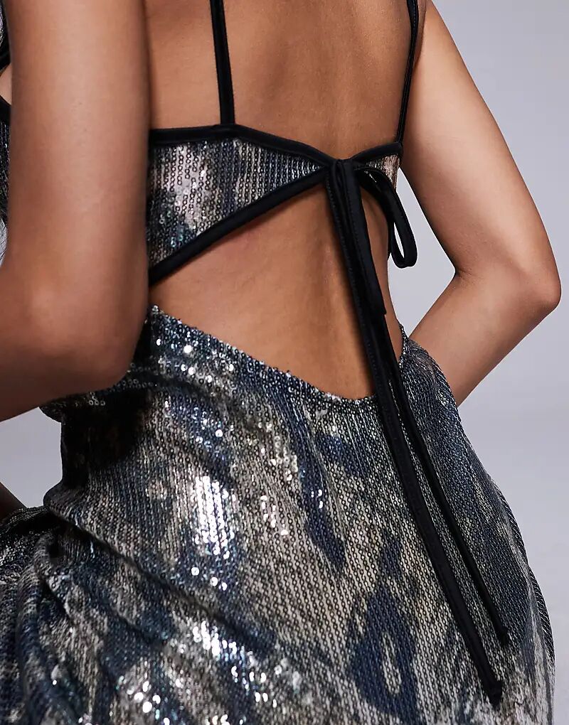 Платье макси ASOS DESIGN с пайетками и разрезом, с принтом зебры 3 144₽