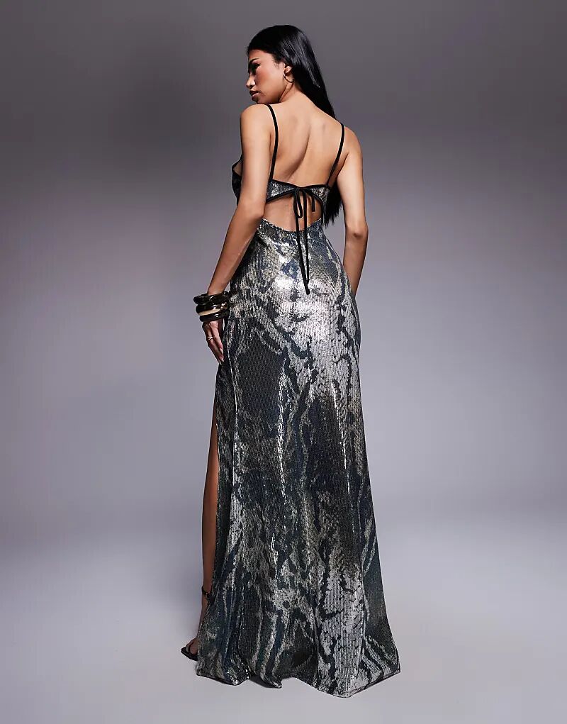 Платье макси ASOS DESIGN с пайетками и разрезом, с принтом зебры