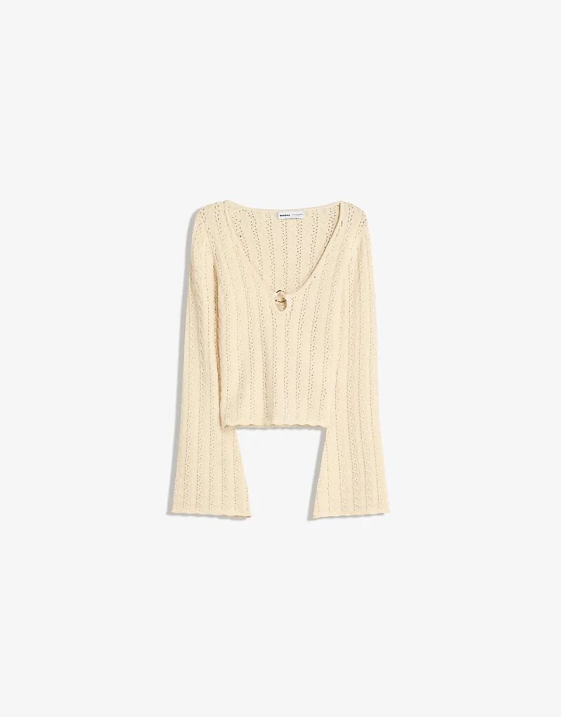 Фактурный свитер Bershka с кольцом белого цвета 4 258₽