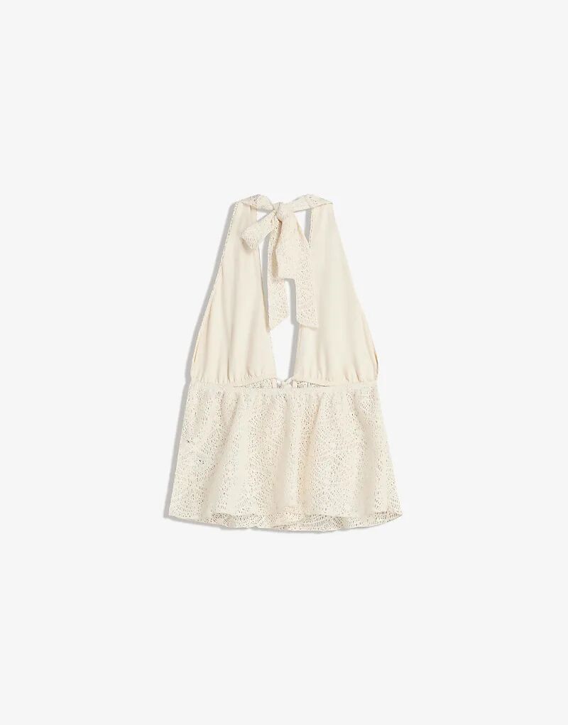 Топ Bershka Rustic с завязкой на шее, белый 3 589₽