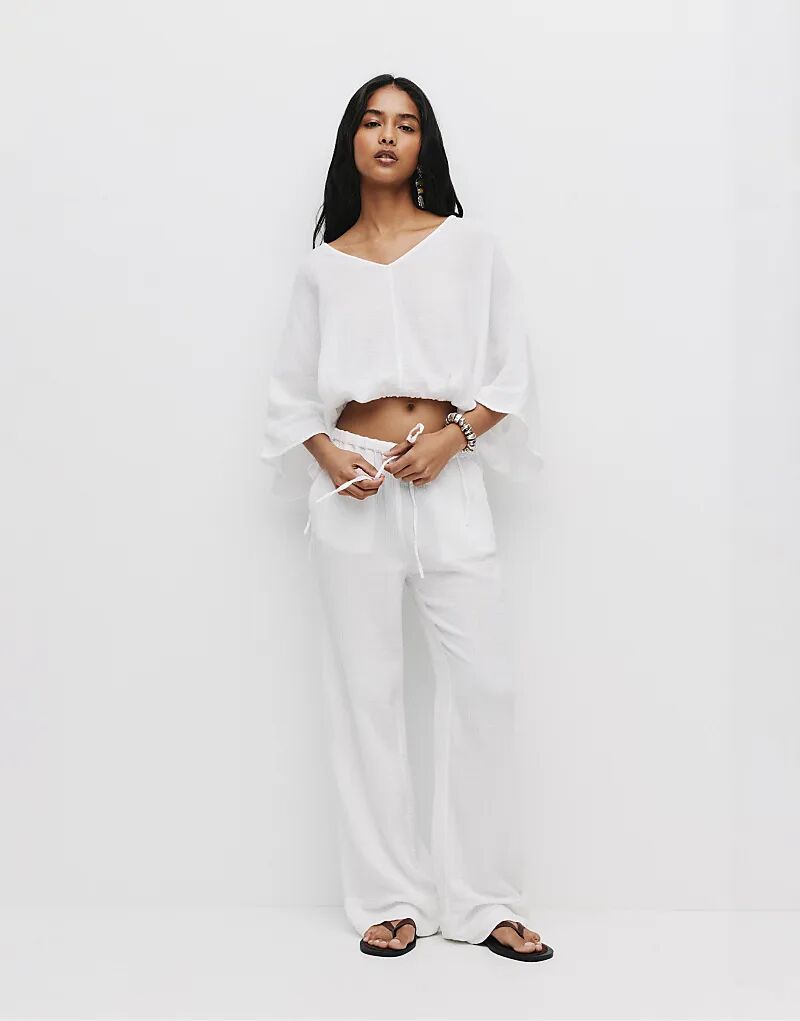 Регулируемая креповая блузка Pull&Bear белого цвета