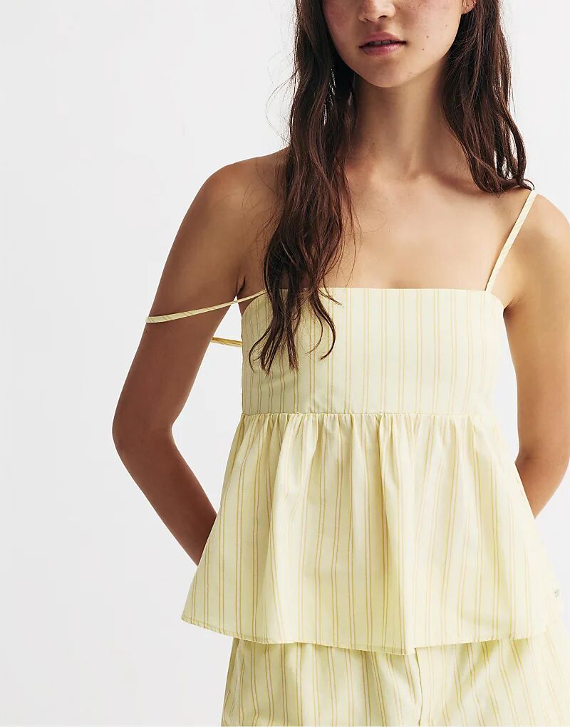 Полосатый топ из поплина Pull&Bear светло-желтого цвета