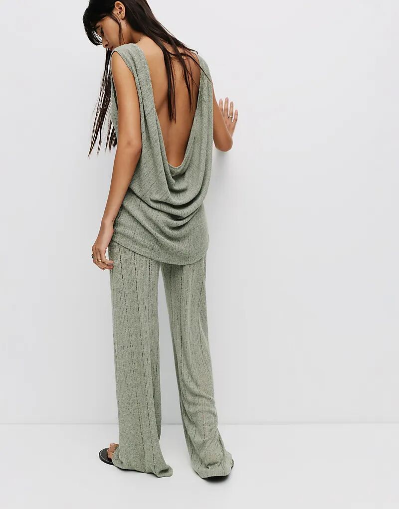Ажурный трикотажный топ Pull&Bear зеленоватого цвета