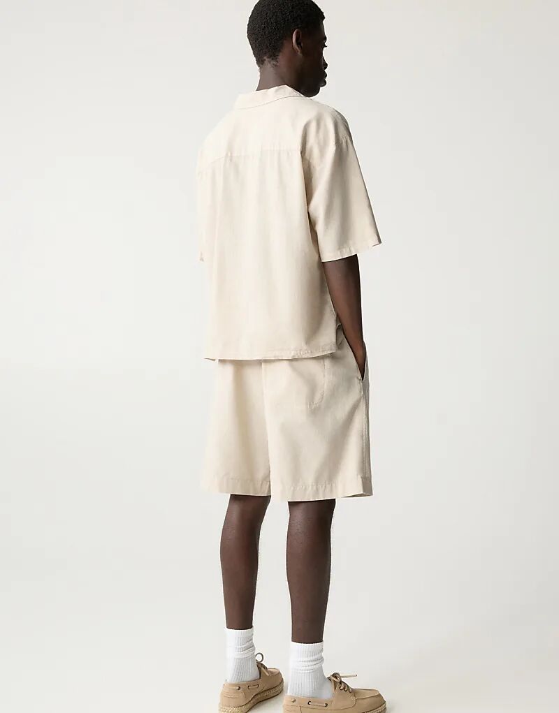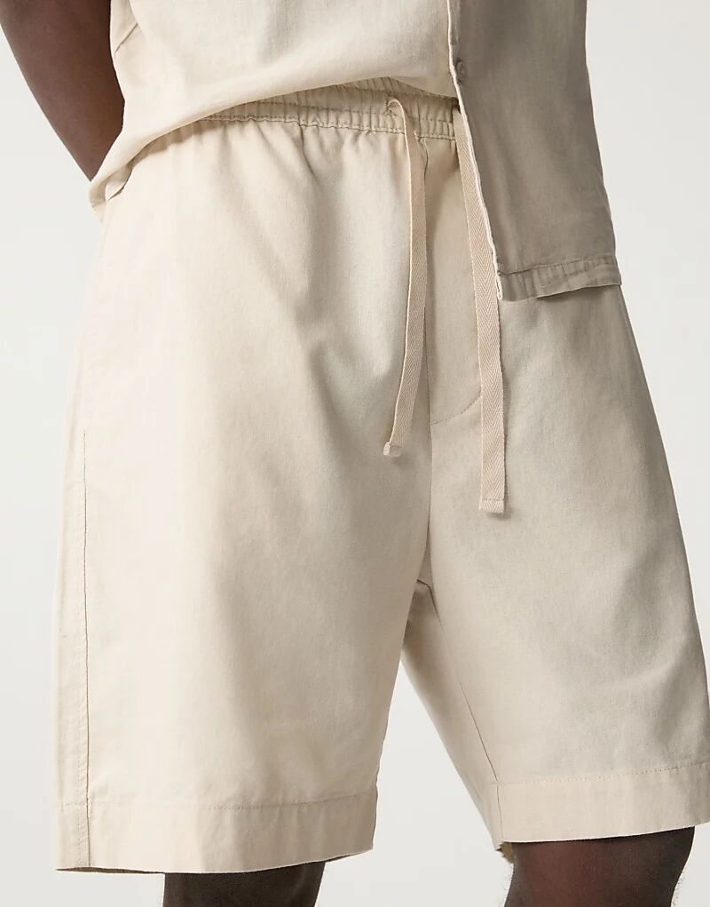 Шорты-бермуды Pull&Bear из льняной смеси бежевого цвета