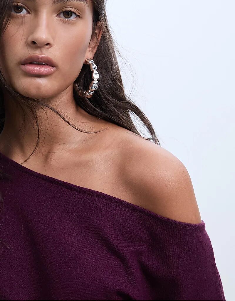 Свитер Stradivarius с вырезом-лодочкой цвета баклажана