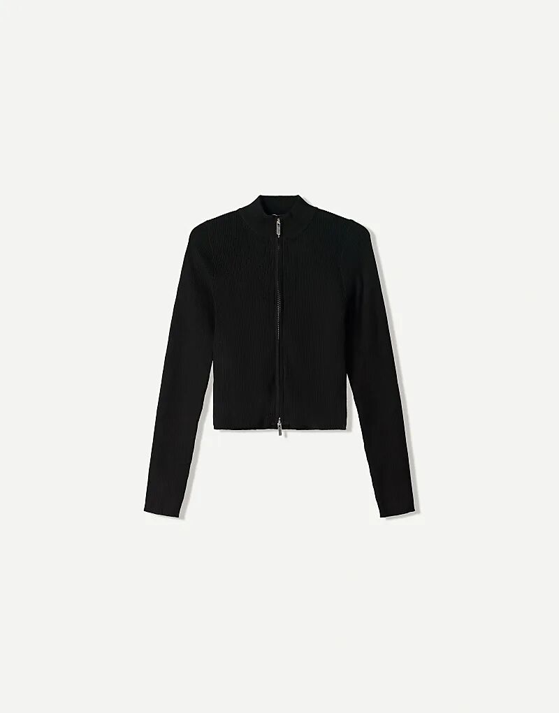 Куртка Bershka Ribbed на молнии черного цвета 4 395₽