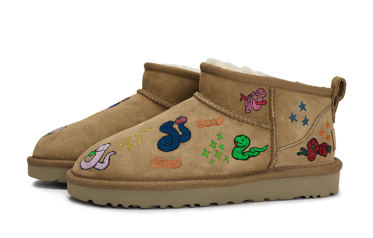 Эти кроссовки изготовлены из оригинальных универсальных повседневных ботинок из овчины UGG CLASSIC ULTRA MINI каштанового цвета для женщин. Верх выполнен из богатой замши, которая обеспечивает мягкую, удобную и теплую посадку. Преобладающая коричнево-каштановая цветовая гамма с эстетикой Майяра подчеркивает теплую осенне-зимнюю атмосферу. Расписанные вручную очаровательные змеи разных цветов добавляют игривости и жизненной силы, символизируя благоприятность и мудрость года Змеи. Кроссовки, изготовленные на заказ, можно носить и стирать как обычно, но избегайте интенсивных физических нагрузок и царапин от острых предметов. Избегайте использования высококонцентрированных органических растворителей при чистке. Используйте мягкую щетку с моющим средством соответствующей концентрации. Изображения соответствуют реальному продукту, и могут иметь небольшие отклонения в рисунке и цвете. Кроссовки, изготовленные на заказ, все изготавливаются вручную, поэтому каждая пара будет иметь небольшие различия.