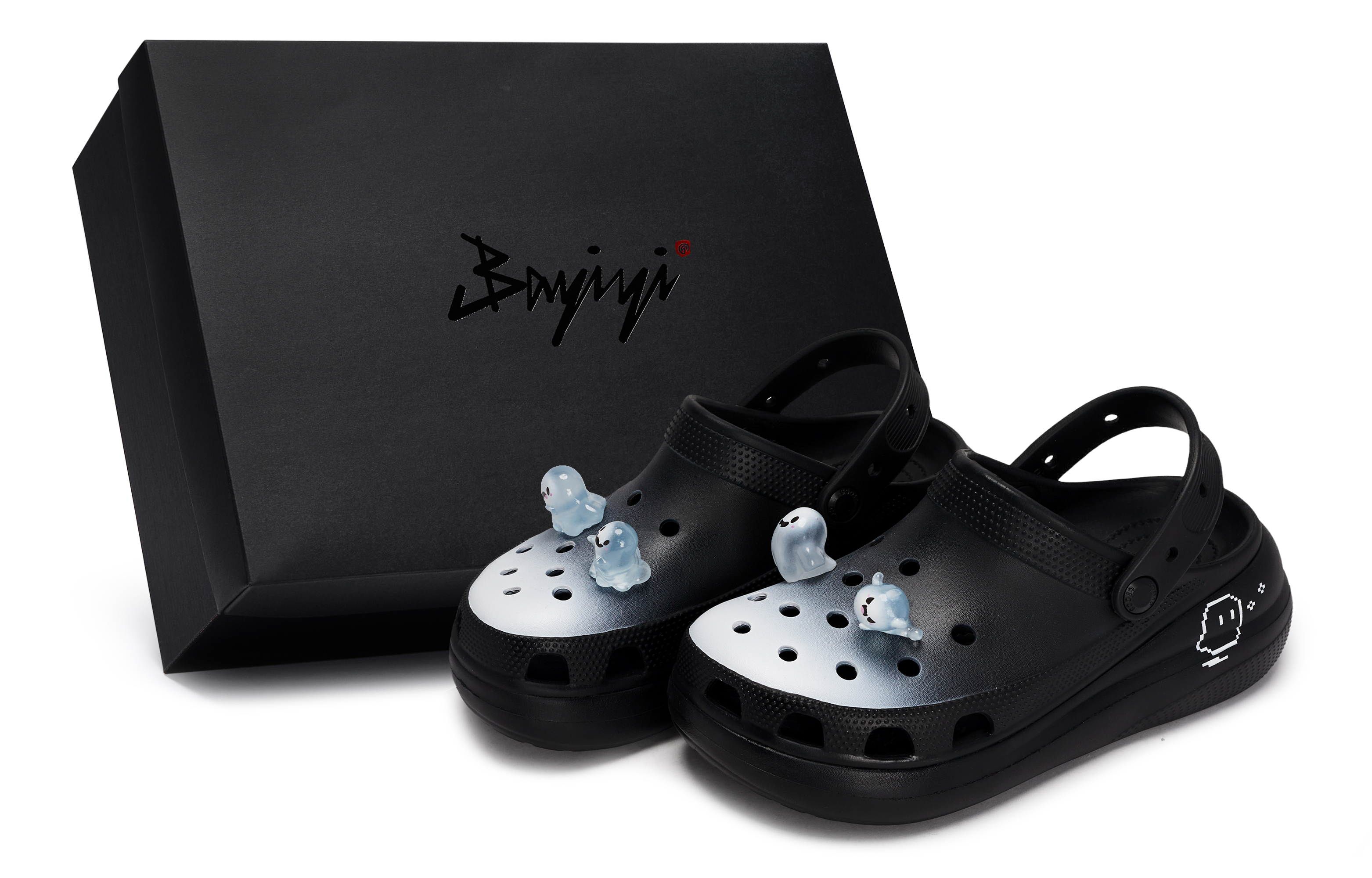 Эти туфли, изготовленные на заказ, представляют собой оригинальные черные сандалии Crocs Classic Crush унисекс, артикул 207521-001. Преобладающая черная цветовая гамма излучает таинственность и глубину. Верхняя часть украшена белой аэрозольной краской, меняющей цвет, словно луч света в темноте. Пряжка украшена симпатичным трехмерным съемным аксессуаром в виде привидения, добавляющим игривости. Туфли, изготовленные на заказ, можно носить и стирать как обычно, но избегайте интенсивных физических нагрузок и царапин от острых предметов. Не используйте концентрированные органические растворители. Используйте мягкую щетку и моющее средство подходящей концентрации. Изображение представляет собой фотографию оригинальной модели, поэтому возможны небольшие отклонения в цвете и рисунке. Вся обувь, изготовленная на заказ, изготавливается вручную, поэтому каждая пара будет иметь небольшие различия.