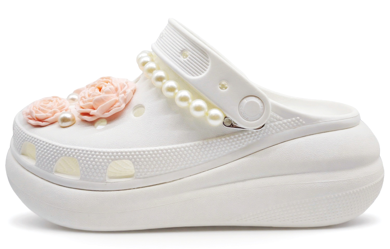 Эти туфли, выполненные по индивидуальному заказу, представляют собой оригинальные белые сабо Crocs Crush Clog EVA, артикул 207521-100, унисекс. Вдохновением для создания этой модели послужило сочетание нежных, мечтательных девичьих чувств и модной эстетики. Нежные розовые цветы украшают верх, напоминая о романтике весны и добавляя нотку мягкости и одухотворенности общему дизайну. Аккуратно расположенные жемчужины, напоминающие мерцающие звезды в ночном небе, излучают элегантность и утонченность. Удачное сочетание цветов и жемчуга создает нежную, освежающую атмосферу, сохраняя при этом изысканность. Изображения соответствуют реальному изделию; возможны небольшие отклонения в рисунке и цвете. Обувь, выполненная по индивидуальному заказу, изготавливается вручную, поэтому каждая пара будет иметь небольшие различия.