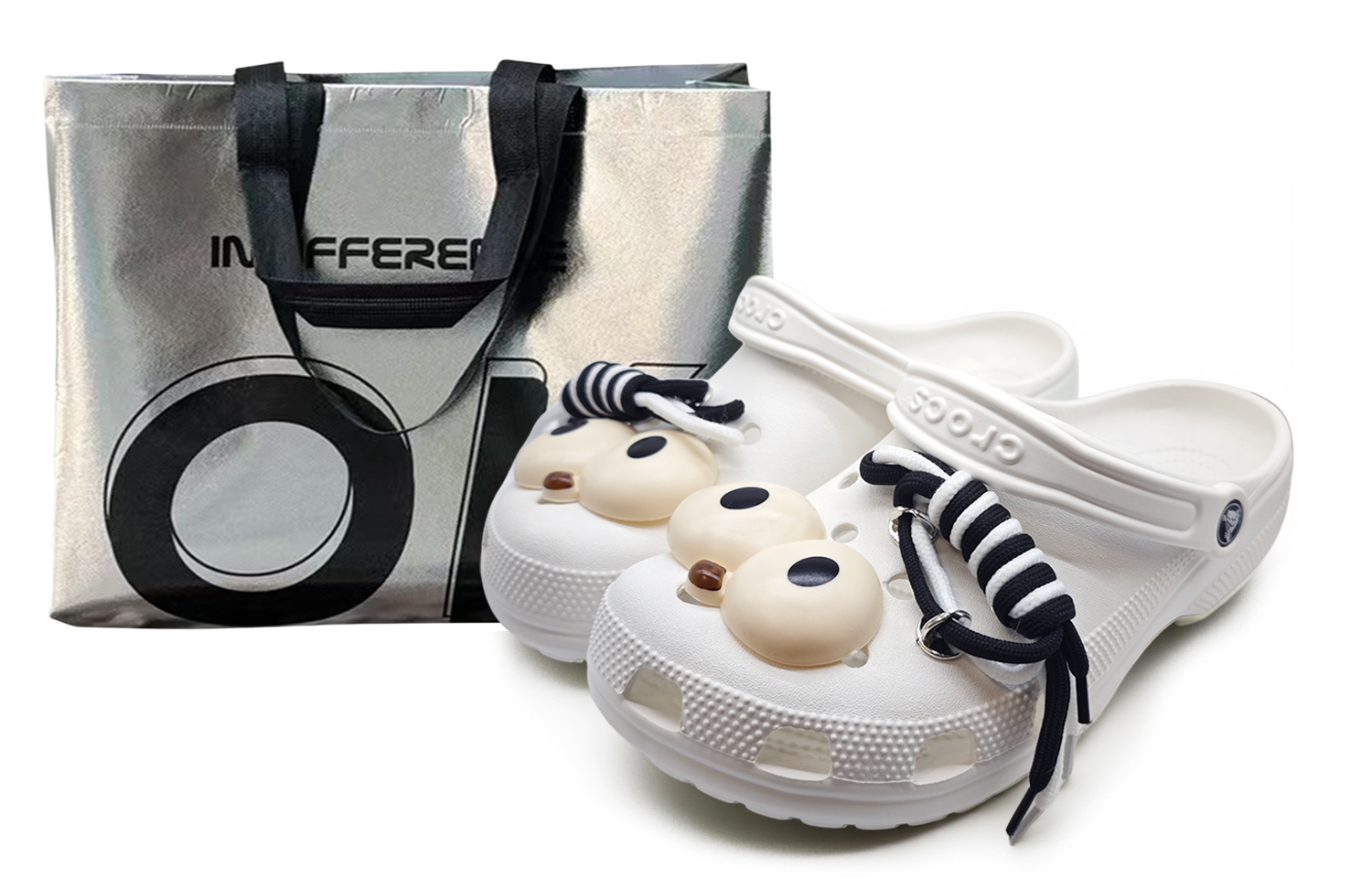 Эти туфли, изготовленные на заказ, представляют собой оригинальные пляжные сандалии Crocs Classic Clog EVA, унисекс, белого цвета, артикул 10001-100. Вдохновленный творческим сочетанием детской фантазии и модных тенденций, дизайнер искусно добавил к верху мультяшные объемные глаза. Округлая форма и черные «зрачки» оживляют кроссовки, вызывая ассоциации с игривым другом. Черно-белые шнурки искусно закреплены на верхе, добавляя визуальную глубину и нотку спортивной непринужденности. Изображение реалистичное; возможны небольшие вариации рисунка и цвета. Обувь, изготовленная на заказ, изготавливается вручную, поэтому каждая пара будет немного отличаться.