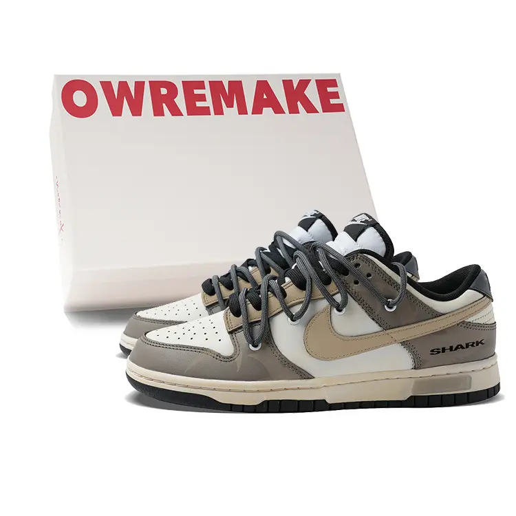 Эта кастомная версия включает в себя оригинальные кроссовки Nike Dunk Low Retro "Black" под артикулом DD1391-100. Общий дизайн этих кроссовок Nike Dunk Low Retro "Black" вдохновлен движением акулы. Основанная на оригинальной модели, эта кастомная версия представлена в серо-коричневой цветовой гамме. Минималистичный верх в сочетании с американским граффити и деконструированными шнурками добавляет деталей и многослойности, демонстрируя ретро-стиль и универсальность кроссовок. Общий образ пропитан стильным уличным стилем, простым, но изысканным, сочетающим модную ретро-эстетику с уникальной индивидуальностью, идеально подходящей для повседневной носки.