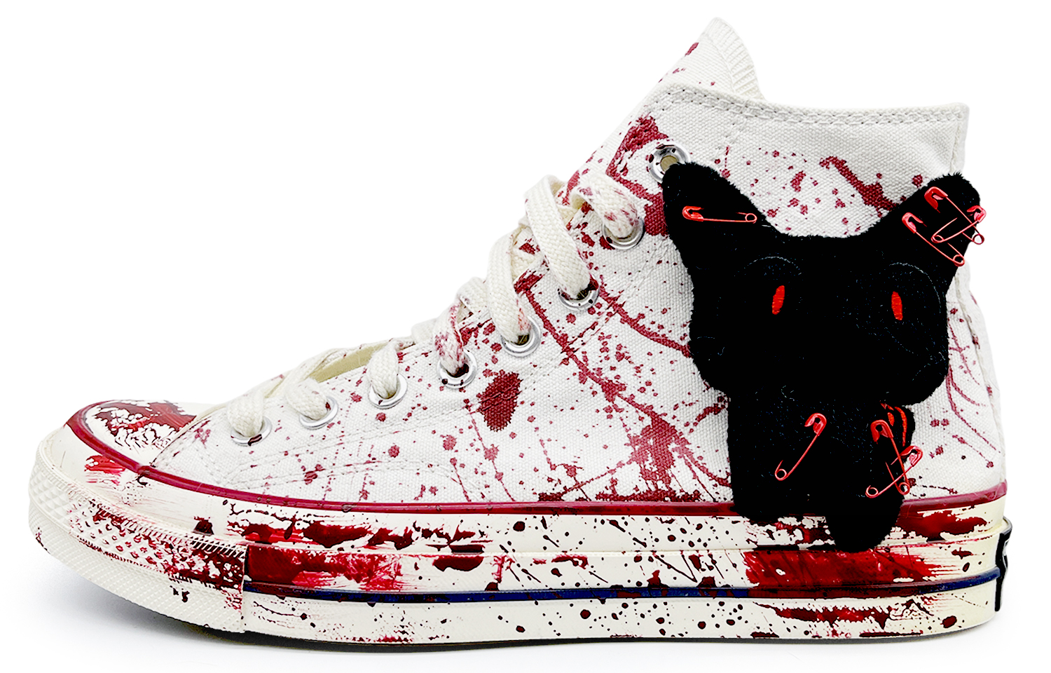 Эти кастомные кроссовки представляют собой оригинальную классическую модель Converse Chuck Taylor 1970-х годов, модные, нескользящие и прочные высокие парусиновые кеды для мужчин и женщин. Дизайн кроссовок вдохновлен красными чернилами, напоминающими следы крови. Фигурка кролика подчеркивает темный оттенок кроссовок, создавая яркий контраст, усиливающий визуальный эффект и создающий выразительный образ. Фотографии сделаны с оригинальных кроссовок, поэтому возможны небольшие отклонения в рисунке и цвете. Все кастомные кроссовки изготавливаются вручную, поэтому каждая пара будет иметь небольшие различия.