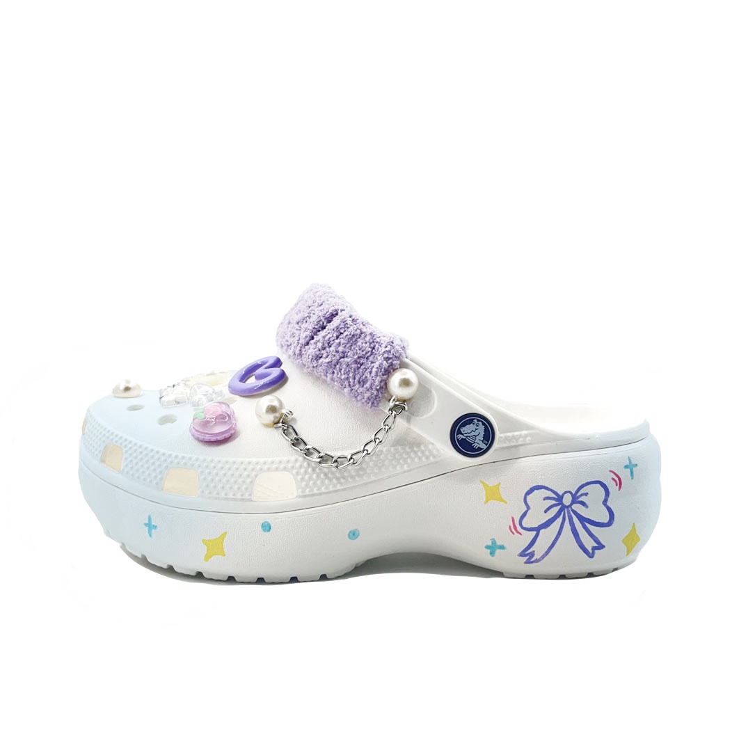 Эти туфли, изготовленные на заказ, - оригинальные сабо Crocs Classic Platform Clog Classic Clog EVA, белые, унисекс, артикул 206750-100. Дизайн вдохновлен детской игривостью. Обувь, изготовленную на заказ, можно носить и стирать, но избегайте интенсивных физических нагрузок и царапин от острых предметов. Не используйте концентрированные органические растворители. Используйте мягкую щетку с подходящим моющим средством. Изображения соответствуют реальному изделию; возможны небольшие отклонения в рисунке и цвете. Вся обувь, изготовленная на заказ, изготавливается вручную, поэтому каждая пара может немного отличаться.