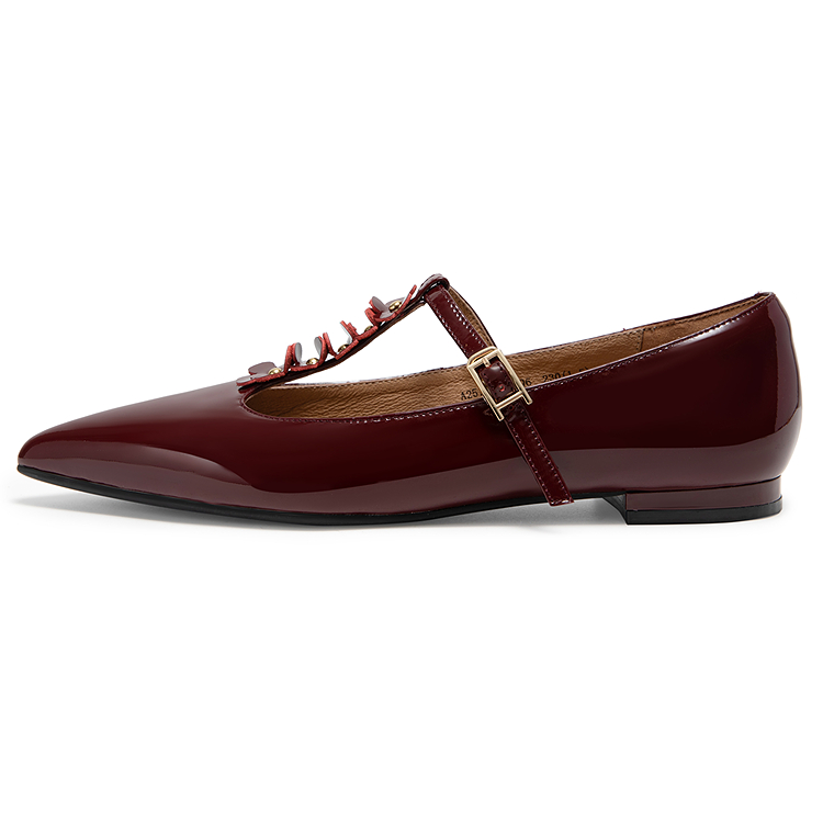 Мягкая, желеобразная поверхность лакированной кожи придает обуви яркий, динамичный вид, делая ваш образ узнаваемым. Тонкий, игривый Т-образный ремешок и металлическая пряжка с цветочным узором создают игривый, динамичный образ, а простые линии подчеркивают изящный, стройный силуэт подъема. Приятная для кожи стелька из свиной кожи снижает давление, обеспечивая воздухопроницаемость и комфорт для ежедневных поездок на работу и обратно. Легкий, низкий каблук высотой 1,5 см и удобная резиновая подошва обеспечивают плавность и непринужденность движений, демонстрируя непринужденную элегантность.