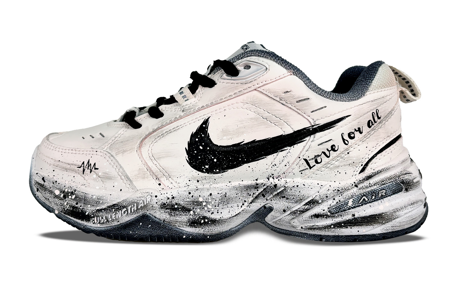 Эти кастомные кроссовки - унисекс Nike Air Monarch 4 White Navy, артикул 415445-102. Оригинальный дизайн кроссовок выбран случайным образом. Вдохновением послужил серо-розовый оттенок. Все изображения сделаны с оригинала. Незначительные отклонения в цвете могут быть вызваны воздействием окружающей среды и использованием экипировки. Кроссовки изготовлены вручную для ежедневного ношения. Избегайте интенсивных физических нагрузок, царапин от острых предметов и использования высококонцентрированных органических растворителей при ношении.