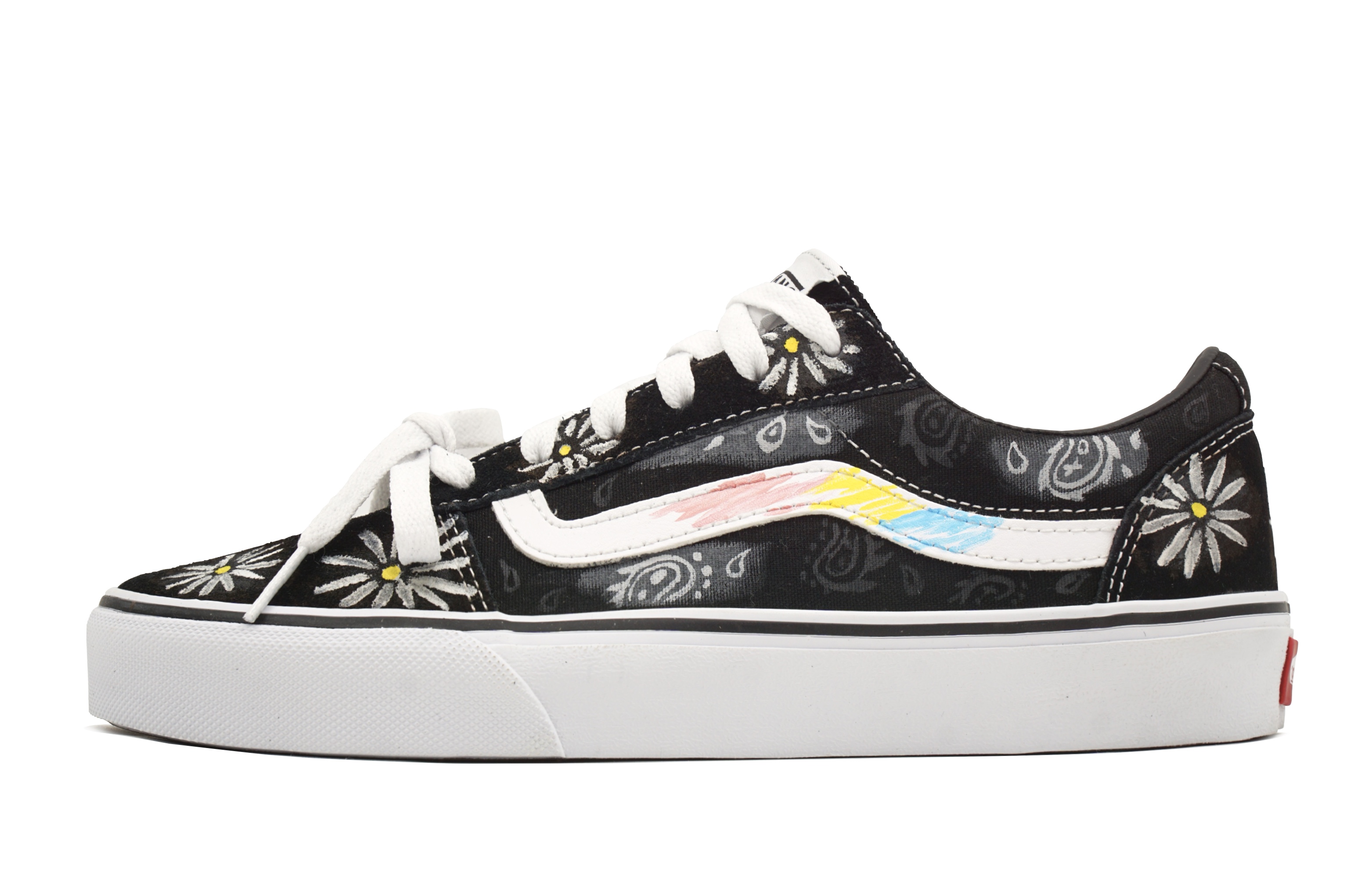 Эти кастомные кроссовки основаны на оригинальной модели Vans Ward, артикул VN0A3IUNIJU. Они изготовлены на заказ с использованием ручной росписи и кисти. Дизайн вдохновлен уличной модой, аутентичным и спортивным стилями, демонстрируя захватывающую спортивную эстетику. Дизайн переднего ремешка добавляет спортивный штрих, создавая солнечную и энергичную атмосферу. Общая цветовая гамма и премиальный черный цвет создают гармоничное сочетание, делая эти кроссовки идеальным выбором для любителей активного образа жизни.