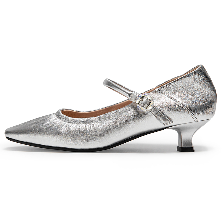 Прочный верх из натуральной кожи, доступный в вариантах из мягкой овчины или текстурированной коровьей кожи, приятен на ощупь и обеспечивает комфорт при ношении. Изящный плиссированный дизайн с бороздками на верхе, а ремешок с цветочной пряжкой добавляет нотку романтики. Трехмерная формованная подставка для стопы, разработанная для балансировки стопы, обеспечивает массаж и снимает давление для большего комфорта. Прочный резиновый каблук высотой 3,5 см удлиняет ноги, воплощая французскую элегантность.