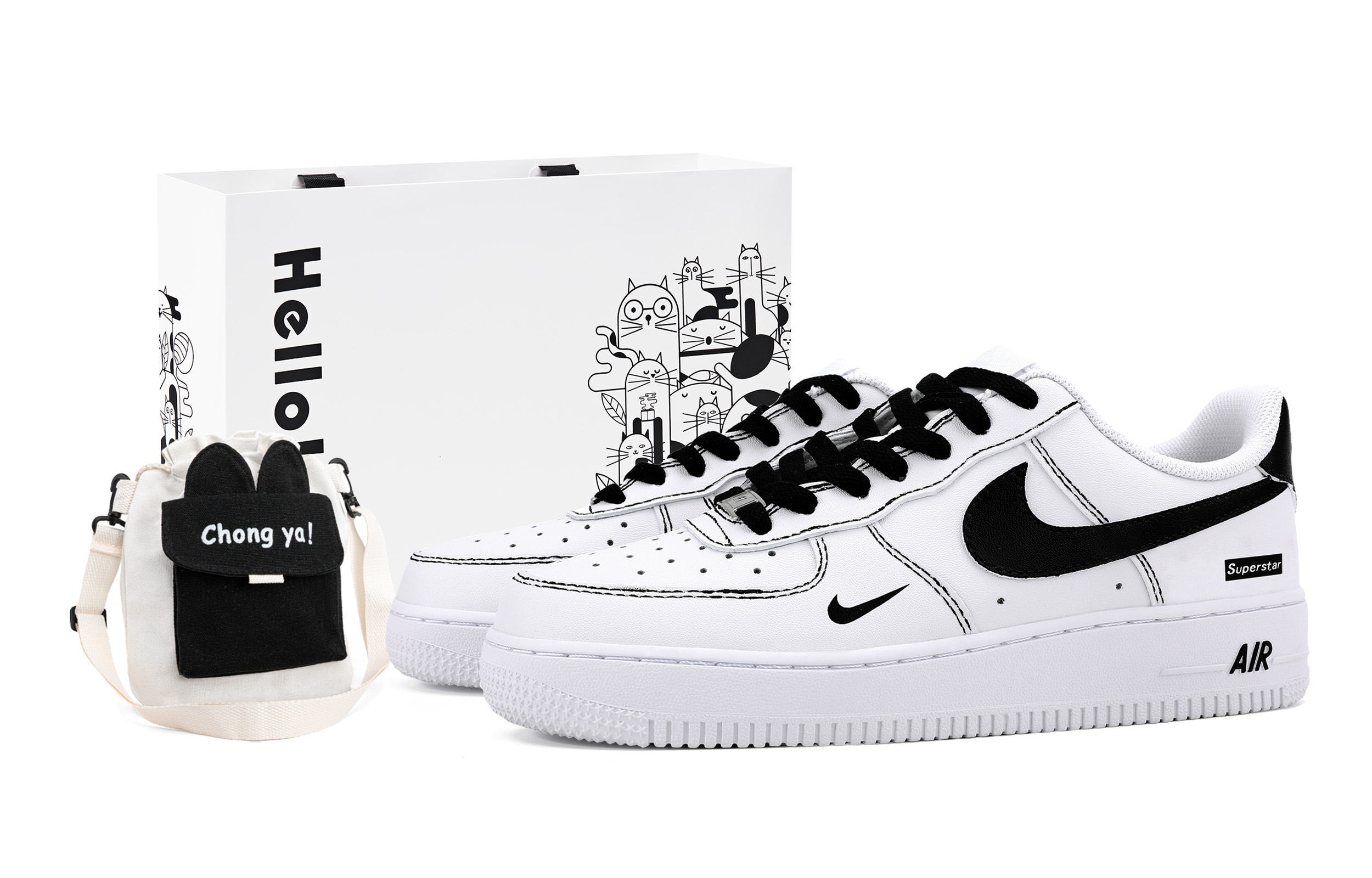 Эта эксклюзивная версия включает в себя оригинальные кроссовки Nike Air Force 1 – нескользящую, легкую, низкую женскую модель в бело-синем цвете, артикул HF0022-100. Вдохновленный классической минималистской эстетикой, дизайн искусно включает черные линии, привнося современный и свежий штрих в традиционный минималистичный стиль. Классический черный логотип Swoosh и черные шнурки воплощают сочетание простоты и стиля, добавляя уникальный штрих к общему образу.