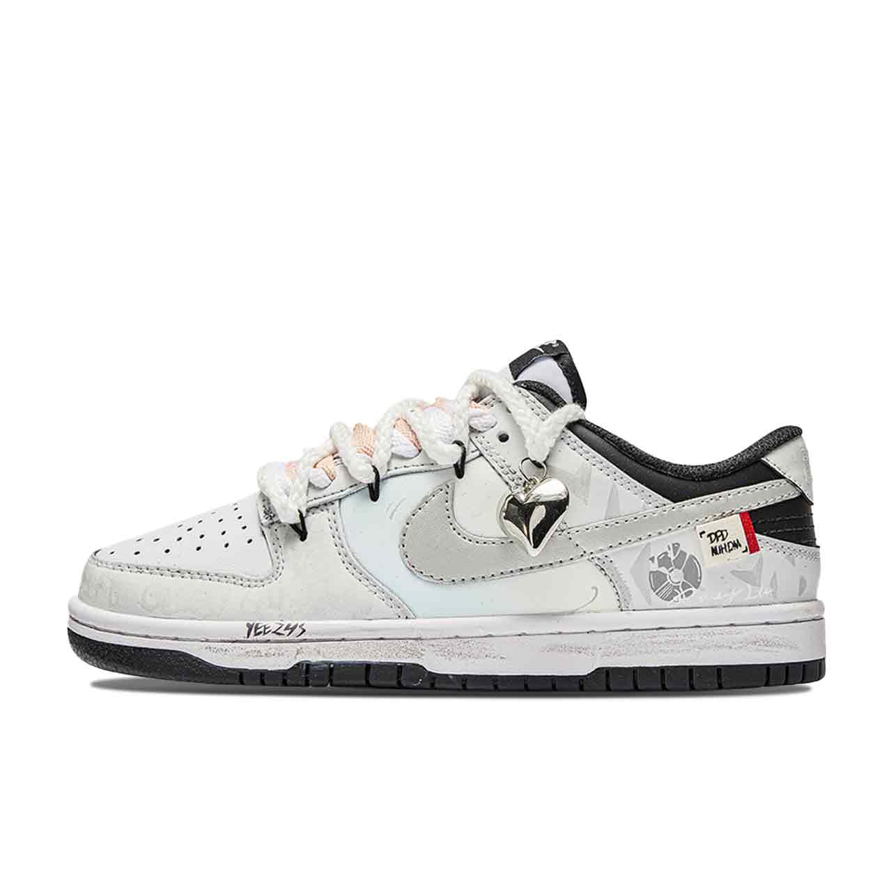 Эти кроссовки, изготовленные на заказ, представляют собой оригинальную модель Nike Dunk. Эта модель выполнена в классическом, универсальном, повседневном низком силуэте Nike Dunk в ретро-бело-бирюзовой цветовой гамме. Основная цветовая гамма - белая, дополненная лаконичными деталями, нарисованными вручную, что создает простой и универсальный образ, идеально подходящий для модных образов.
