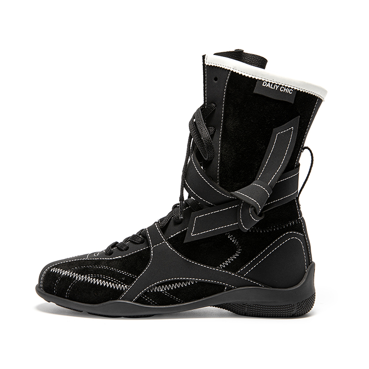 Узкий круглый носок, сочетание разнообразных материалов и плавно изогнутый силуэт создают эффектный образ. Шнуровка, элегантное голенище в мотоциклетном стиле и уникальные узловатые боковые вставки делают эти кроссовки идеальными для повседневной носки. Тонкая подошва Lava Sport естественным образом повторяет изгибы стопы, плавно распределяя давление при ходьбе, обеспечивая комфорт и удобство в самых разных ситуациях.