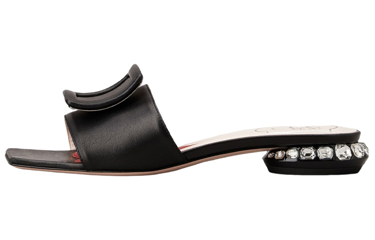 Драгоценные архивы дизайнера также вдохновили на создание Strass Heel – изящной модели на низком каблуке с округлой пяткой и сверкающими стразами. Эти мюли Strass Heel с пряжкой на каблуке, обтянутом кожей, изготовлены вручную из мягкой кожи наппа и украшены новым фирменным логотипом бренда и элегантной пряжкой в форме бочки. Стелька украшена фирменным мягким сердечком.