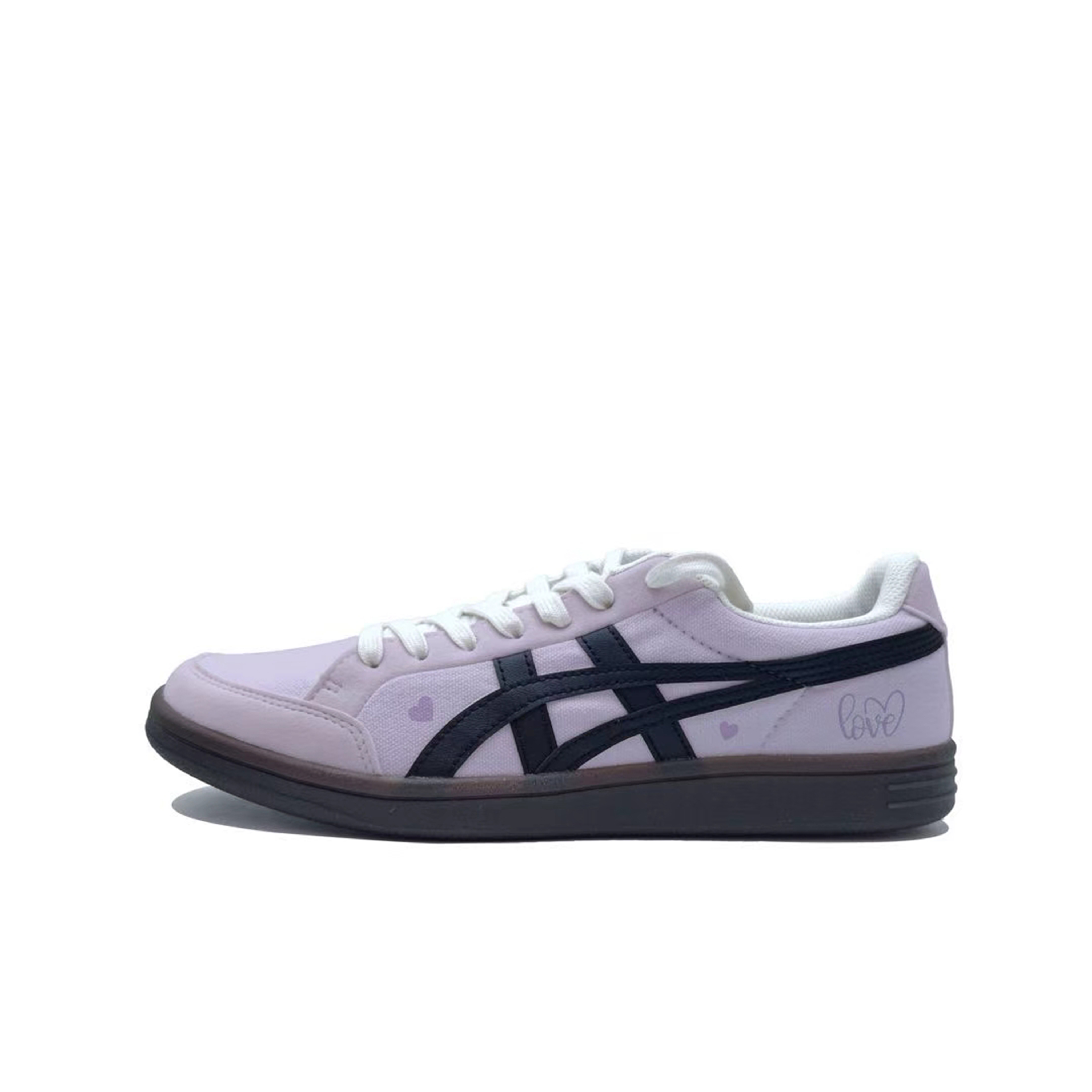 Эти кроссовки созданы на основе оригинальных низких кроссовок Onitsuka Tiger Advanti из ткани и синтетической кожи и доступны в кремовом, черном и белом цветах для мужчин и женщин. Оригинальный номер модели - 1183B799-101. Вдохновленные фиолетовым цветом, кроссовки перекрашены в светло-фиолетовый цвет и украшены белым граффити, что добавляет им уникальности.