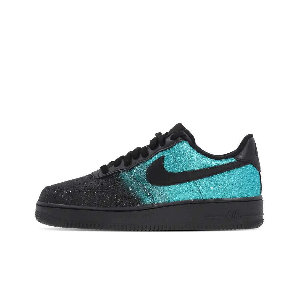 Эти кроссовки изготовлены на заказ на основе оригинальных кроссовок Nike Air Force 1 Low Air Force One чистого черного цвета. Вдохновленные стилем высокой моды, они используют сине-черный градиент, украшенный звездами и бриллиантами, для усиления визуального эффекта ретро и легкой роскоши. В комплект входят защитные щитки для обуви.