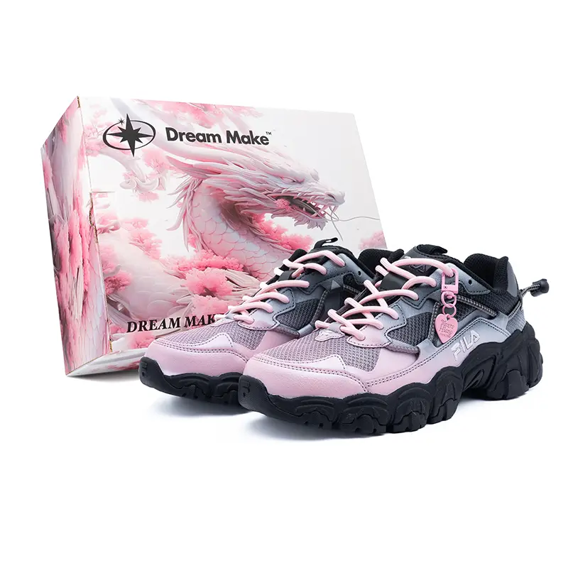 Эти кроссовки, изготовленные на заказ, представляют собой оригинальные низкие, нескользящие, износостойкие, дышащие и повседневные кроссовки FILA Running, доступные в черно-сером корейском стиле для мужчин и женщин, артикул 1JM01248_001. Эти черно-розовые градиентные кроссовки - это больше, чем просто кроссовки; это сочетание моды и функциональности.