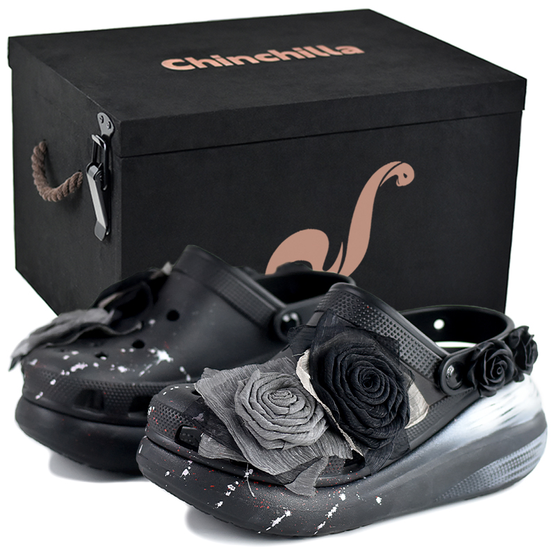 Эти кастомные кроссовки представляют собой оригинальные сандалии Crocs Classic Crush, унисекс, черного цвета, артикул 207521-001. Вдохновленная аристократичным стилем Chanel, эта пара элегантна, молодежна, благородна, сдержанна и в то же время модна. Классическая расцветка универсальна и неподвластна времени, а кружевная вышивка добавляет текстуру.