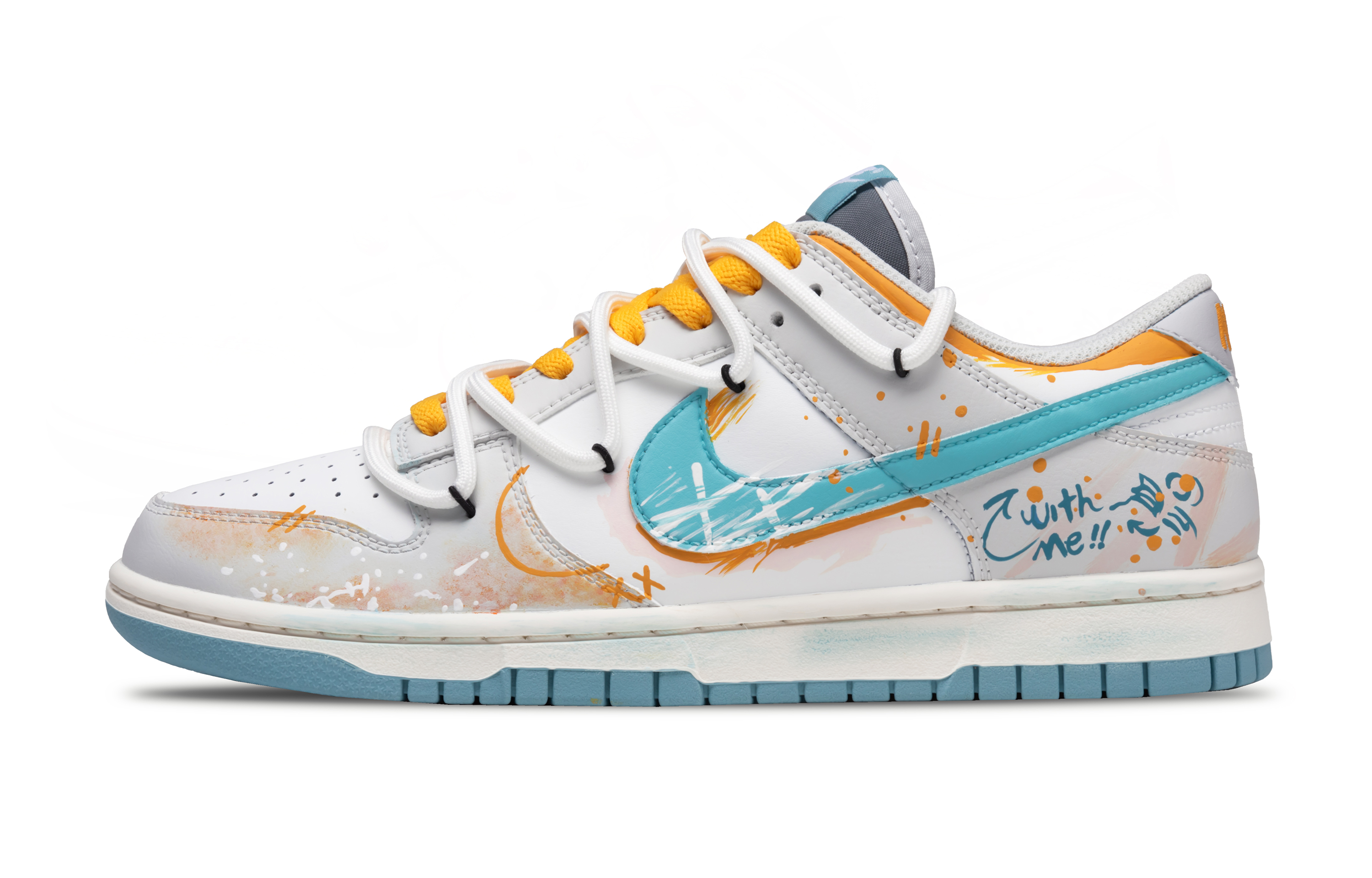 Nike Кроссовки для скейтбординга Dunk Bubbles Wave Low унисекс, синие и желтые