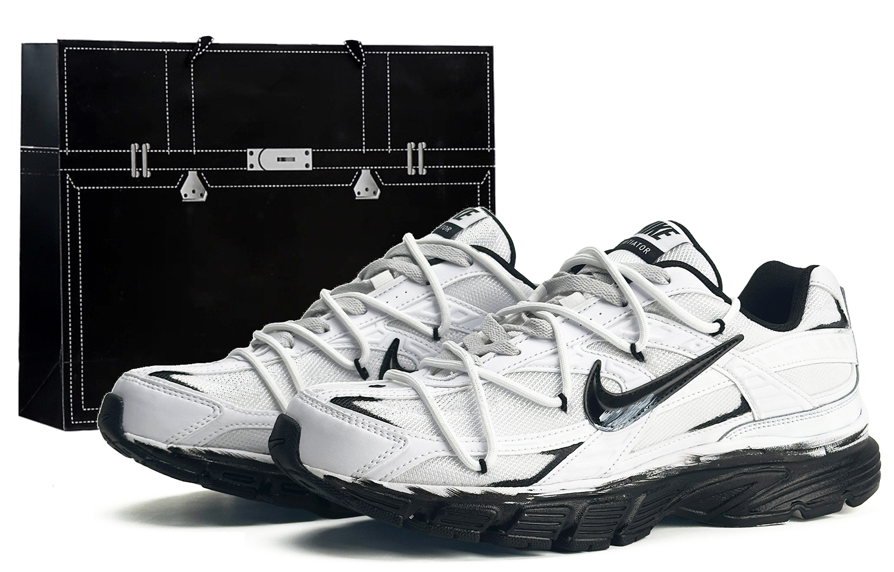 Эта кастомная версия включает в себя оригинальные кроссовки Nike Initiator белого цвета, артикул 394055-100, а также дополнительные артикулы 395055-100, FQ6873-101 и 394055-101. Оригинальный дизайн кроссовок выбран случайным образом. Дизайн вдохновлен песчаными дюнами и пустыней.