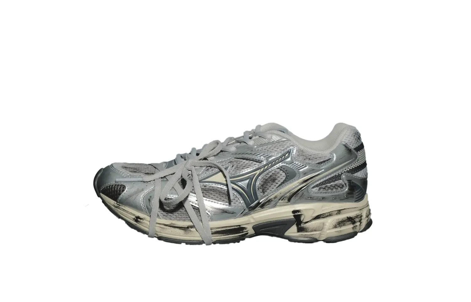 Оригинальные кроссовки Mizuno Retro – это удобные сетчатые кроссовки с низким верхом, износостойкие и дышащие, с эффектом потертости, одинакового фасона для мужчин и женщин, серебристо-серого цвета. Оригинальный номер модели: D1GH222917.