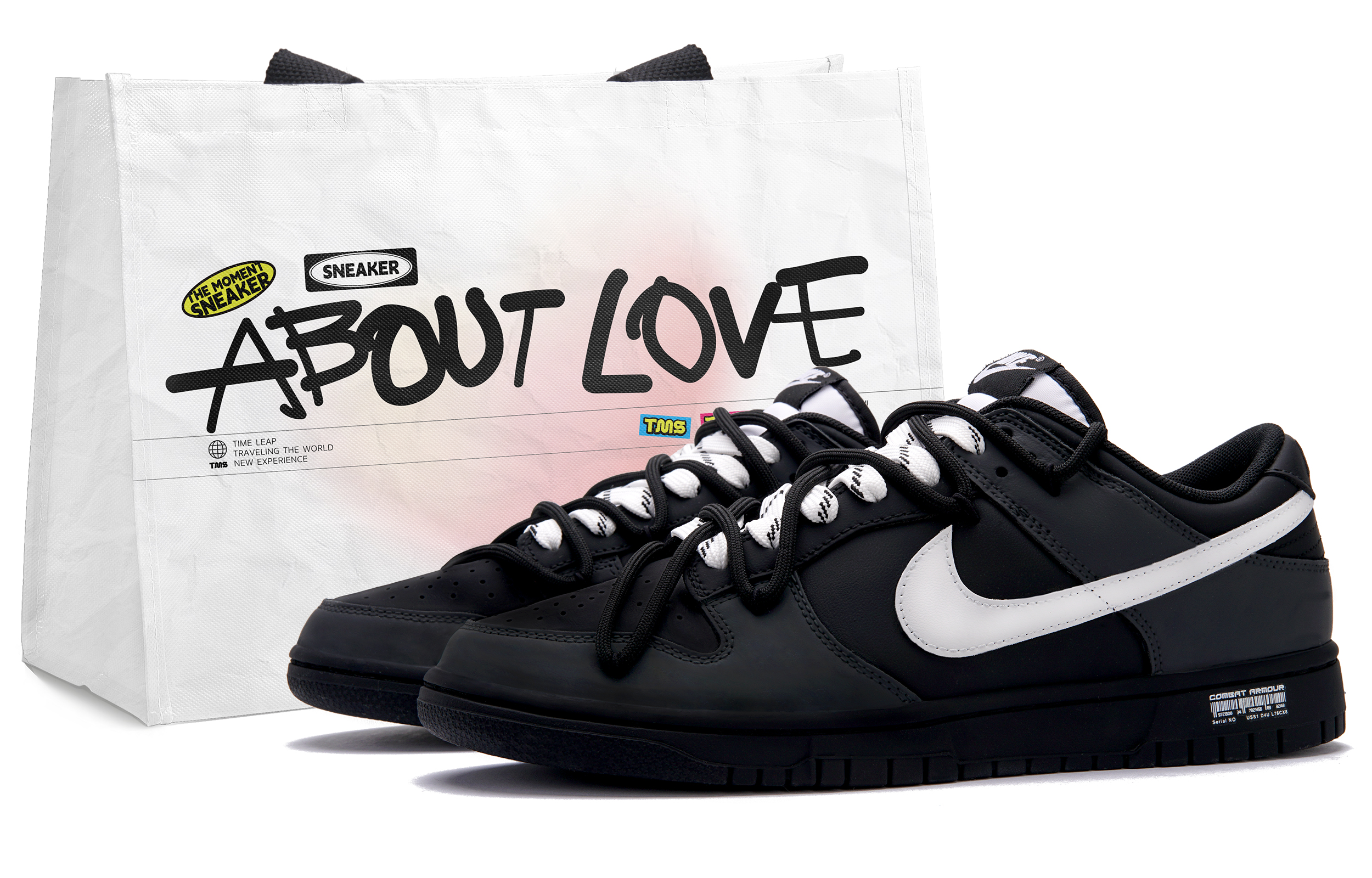 В кастомной версии кроссовок используются оригинальные низкие износостойкие кроссовки Nike Dunk Low Retro "Black" Panda в черно-белом цвете.