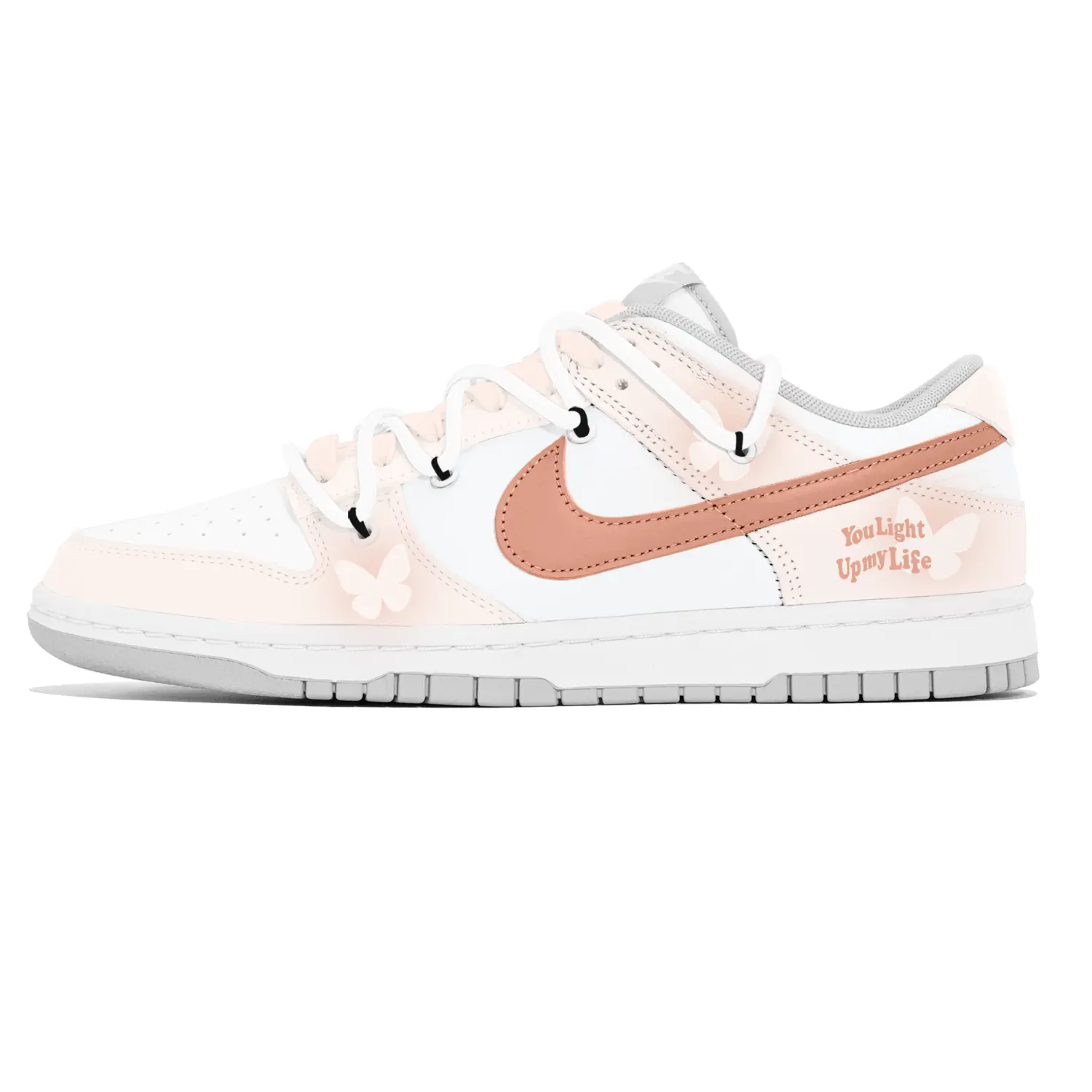 Эта кастомная версия представляет собой оригинальные женские низкие кроссовки Nike Dunk Low «PHOTON DUST» в бело-сером цвете. Модель вдохновлена традиционными классическими расцветками.