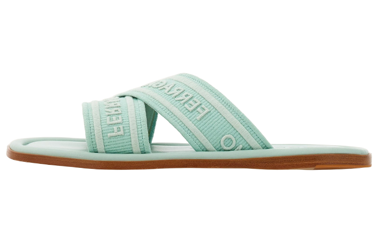 Шлепанцы с круглым носком и логотипом Ferragamo, Light Blue 22 459₽