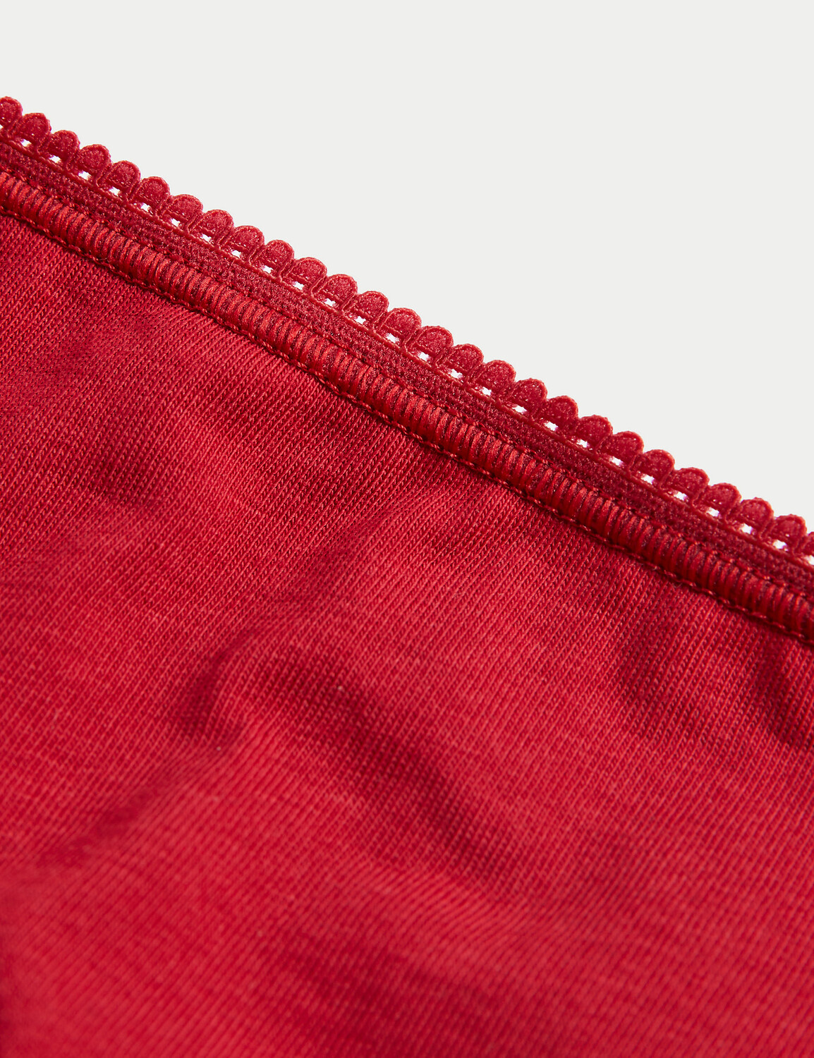 Обновите свои самые необходимые вещи с помощью этих трусиков бикини из хлопка. Привлекательные фасоны имеют заниженную посадку и достаточную эластичность для комфорта и посадки. В набор из пяти штук входит сочетание простых и забавных принтов.\nКоллекция M&S: универсальные модели современных форм с уникальными и игривыми деталями.