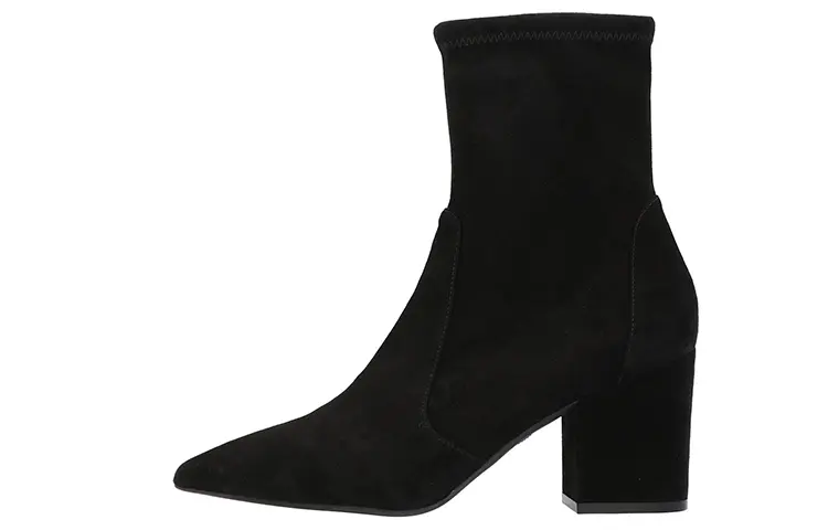Эти черные замшевые женские ботильоны Stuart Weitzman – воплощение модного дизайна. Простая однотонная расцветка идеально подходит для повседневной носки. Высота обуви – 16 см, каблук – 7,5 см.