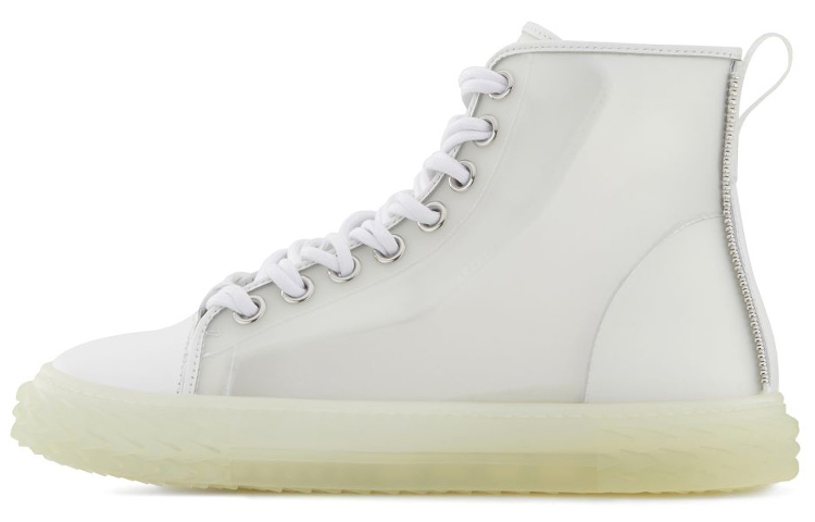 Эти высокие кроссовки, изготовленные из полупрозрачной резины, украшены фирменной нашивкой и кольцом на пятке, а также тональной резиновой подошвой Blabber, украшенной логотипом.